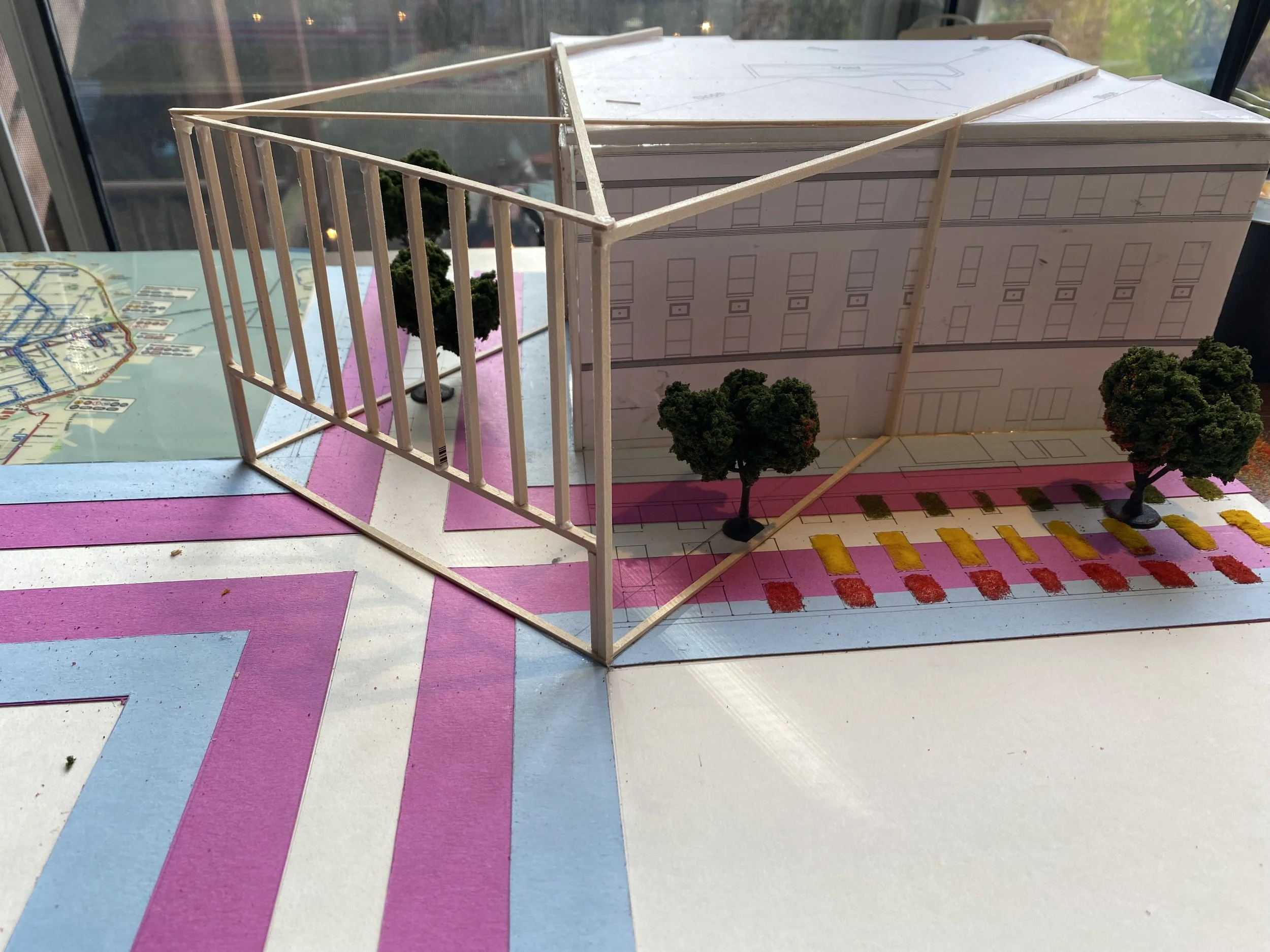 To disentangle the idea of structural reconfiguration, we can think about how structures of power are already represented in the building and the neighborhood (the prison industrial complex, surveillance, racism, genocide, colonialism, policing, street sweeping of encampments, lack of mental health services, private militias, gentrification, capitalist cooptation of trans bodies, performative ways of enacting care that don't help communities directly), and which are the ways of local resistance that we are inspired by (Compton’s Riot, trans kinship networks, solidarity, mutual aid between the unhoused, art practices, graffiti) to propose an alternative way or relating (non-hierarchical power, horizontality, the rhizome, community ownership, blurring private/public, connection/broadcasting, the figure of the Chrone), and how can we translate this way of relation into the current structure of the building. This action probably will need a practice of dismantling the existing structure or adapting it so it can be reconfigured into this alternative way of relating.